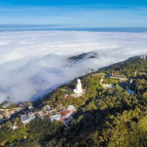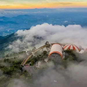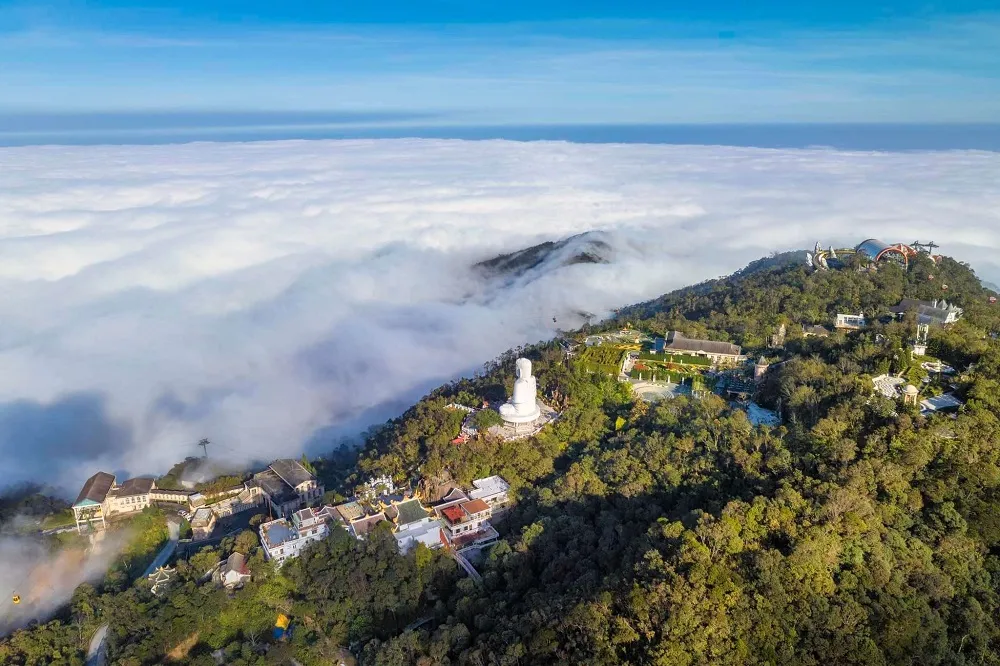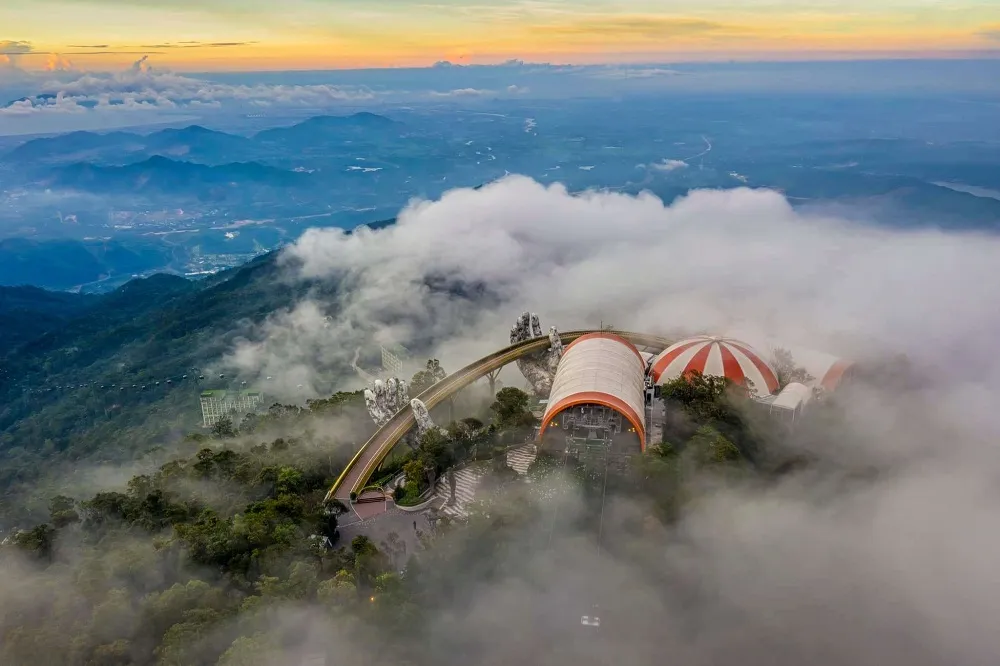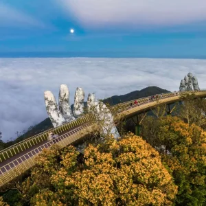 Here you can admire the primeval forest stretching mountain ranges, far away, the beauty of Danang city. The view surounding the Golden Bridge becomes gorgeous and shimmering like a fairy land on foggy days with white clouds.