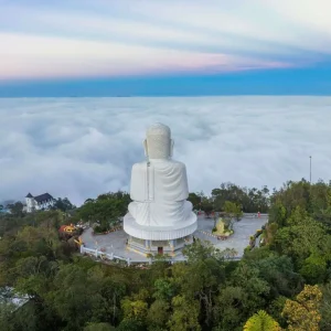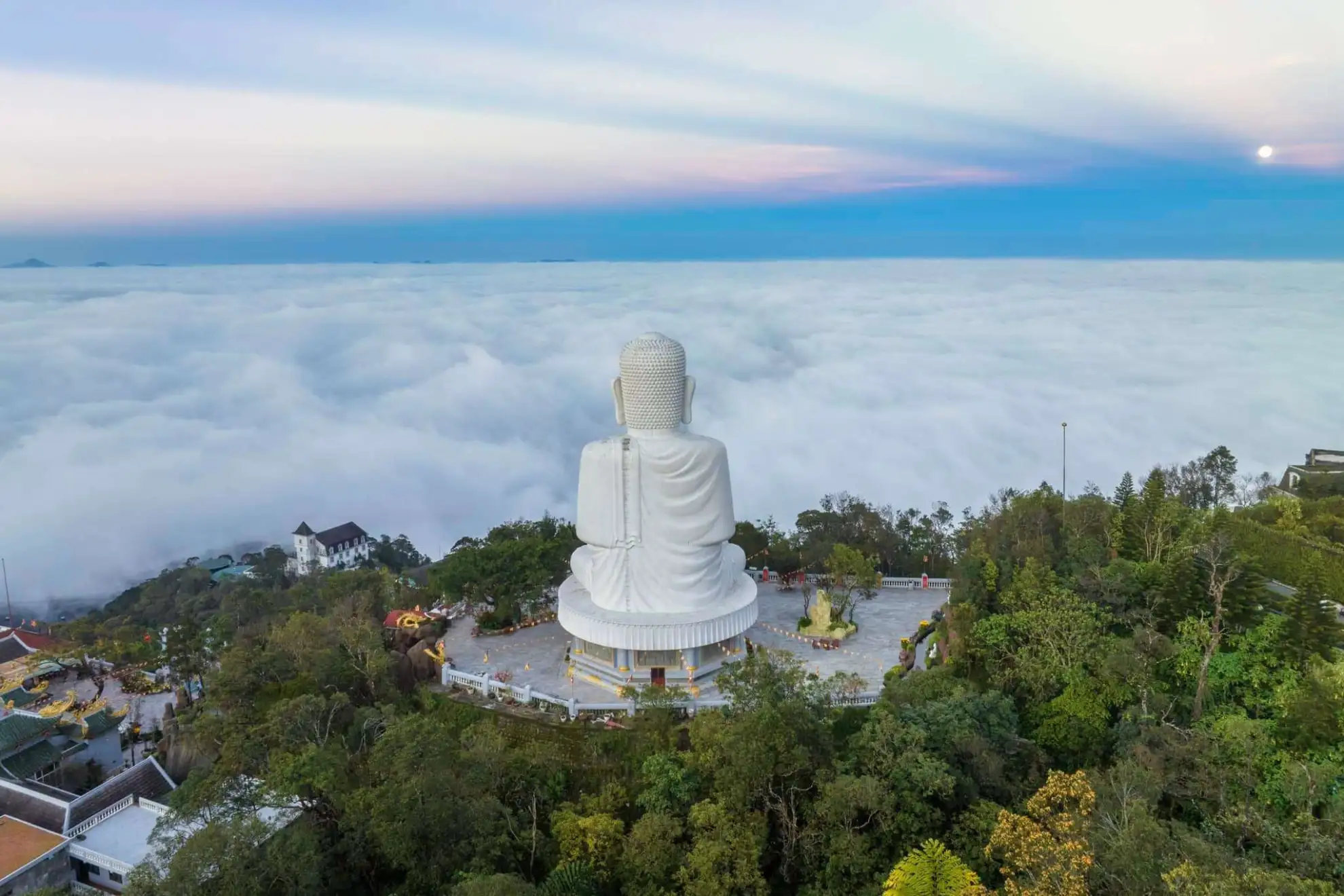 Next, in our Hoi An to Bana Hills tour by car, we will visit the Linh Ung pagoda. It is a serene and peaceful pagoda at the top of Ba Na Hills mountain resort. The pagoda is prominent with a massive Buddha statue in 27 meters in height that overlooks the surrounding valley, creating a sense of quiet and tranquility.
