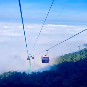 Ba Na Hills cable car obtained two world records: the longest nonstop cable car and the tallest cable car from the first to the last station. You will enjoy the ride to Heaven on the cable car with stunning views of the fairy hair waterfall, the lush splendor of the immense green forests, the blue sky, and the white clouds.