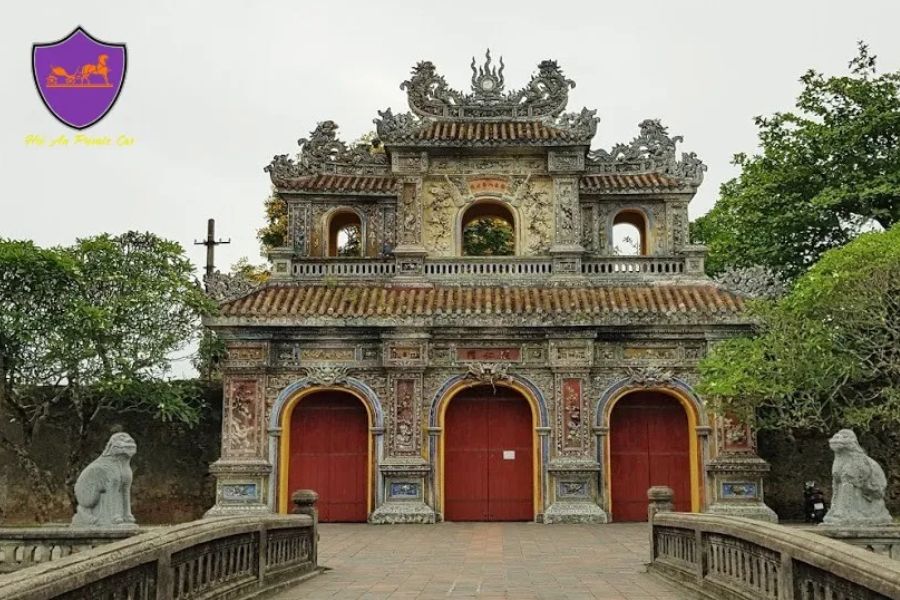 The tour begins at Minh Mang Tomb, famous for its perfect Feng Shui layout and harmonious natural setting.