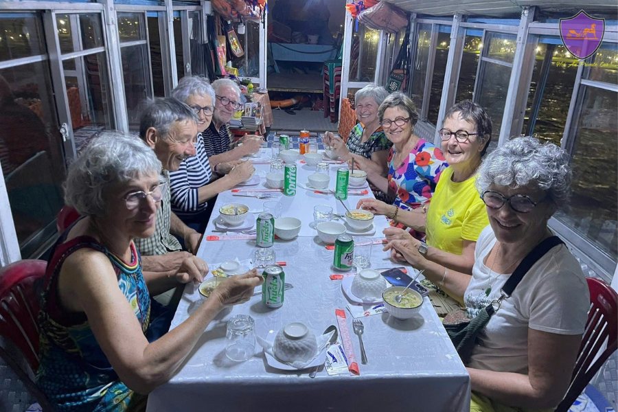 After the tour, visitors return to the Dragon Boat for dinner featuring local specialties. At the same time, they can enjoy the romantic city scenery and the Perfume River illuminated by streetlights.