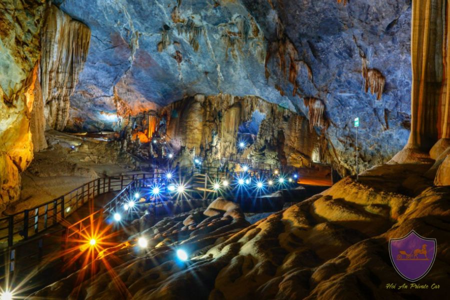 Additionally, there are thousands of stalactites in distinguished shapes. All of them are gorgeous, twinkling, and bring mysterious vibes. Next, you do not need to worry about safety too much on the way because the cave is equipped with modern electric infrastructure, especially an LED light system inside the cave.