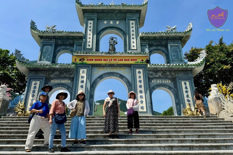 To begin your journey, our high-quality private car will collect you from Tien Sa Port, located approximately 600 meters from your cruise ship. After disembarking, you can either walk or take a bus to the gate to meet our driver. He will be holding a welcome sign with the company logo and your name for easy identification.